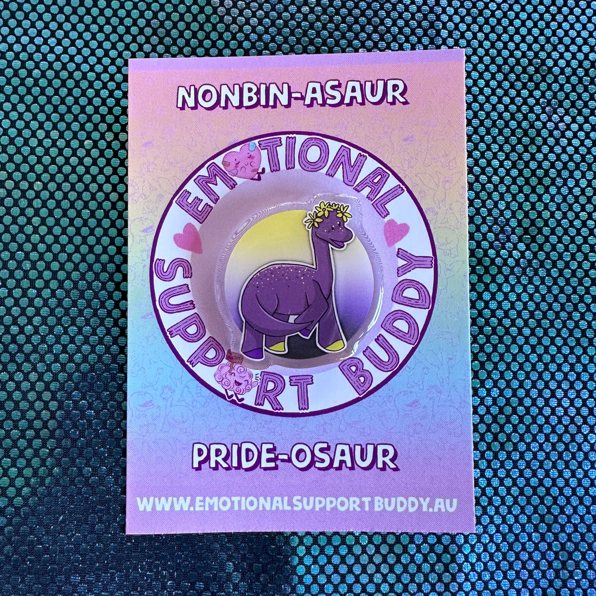 DINOSAUR Nonbinary Pride Acrylic Pin- PRIDE-OSAUR Nonbin-asaur