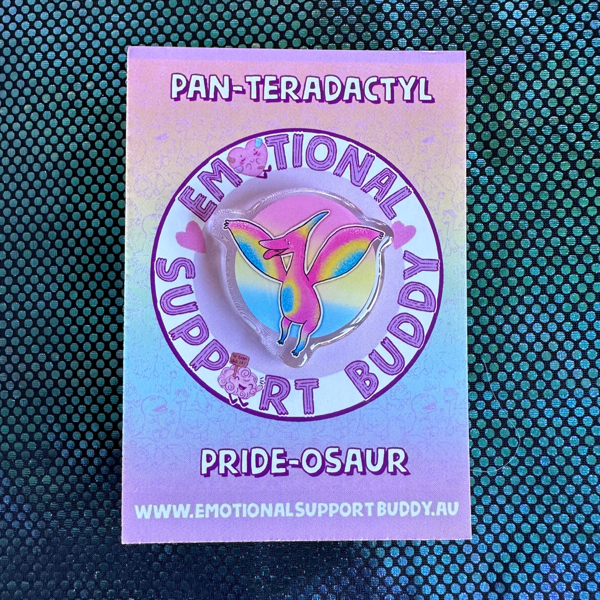 PTERODACTYL Pansexual Pride Acrylic Pin- PRIDE-OSAUR Pan-teradactyl